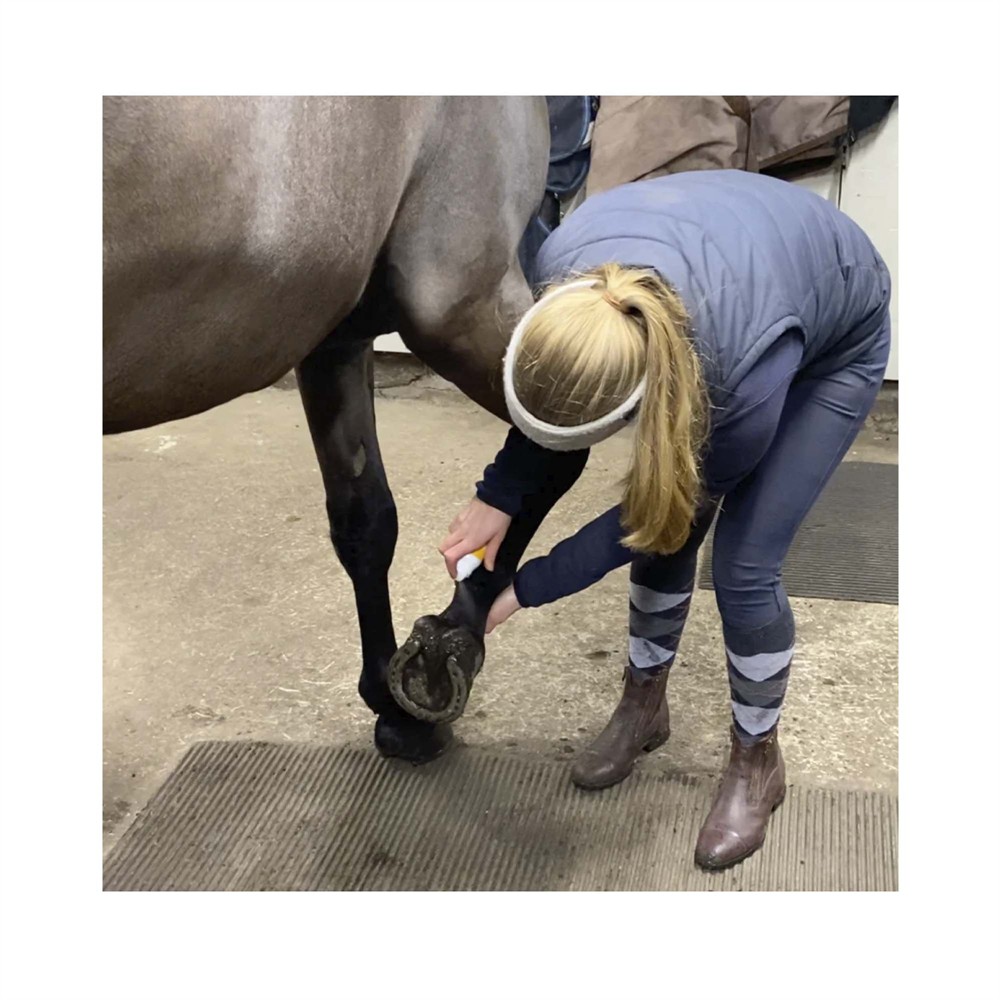 Vid användning på område med mycket behåring såsom hovskägg eller vid skorv i svans eller man; gör en bena när du sprayar för att komma åt huden.