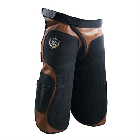 Förkläde i högkvalitativt läder. Förstärkningar är tillverkade i 2mm tjockt läder, med ett stötdämpande och flexibelt inre skydd. Stängs i midjan, midjans vidd är anpassningsbar med kardborre och/eller universalbälte med spänne.