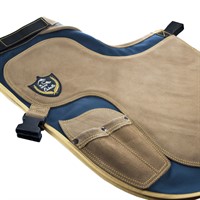 Förkläde med basen tillverkad av högkvalitativ canvas (50% polyester, 50% bomull). Förstärkningar är tillverkade i 2mm tjockt läder, med ett stötdämpande och flexibelt inre skydd. Stängs i midjan, midjans vidd är anpassningsbar med starka kardborreband och/eller universalbälte med spänne.