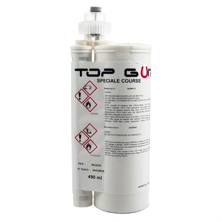 Limmet måste appliceras med lämplig pistol och vi rekommenderar att använda Top Gum’s mixtips för optimal blandning av limmets 2 komponenter. Limmet kan användas för att fästa olika material på hoven, men även för att reparera skadad hov. Det tar minst 3 minuter att härda. Dess slutliga mekaniska hållfasthet uppnås efter 12 timmar.