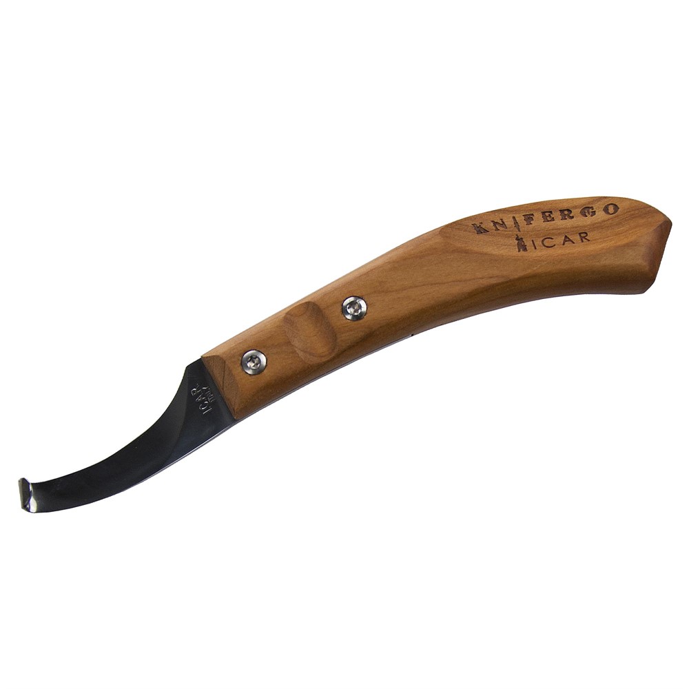 ICARs ergonomiska hovkniv är tillverkad i Italien och har ett supervasst blad som är manuellt slipat av experter för att behålla långvarig skarp egg. Handtaget är tillverkat av körsbärsträ och designat för bästa komfort och kontroll av kniven. Utbytbart blad.