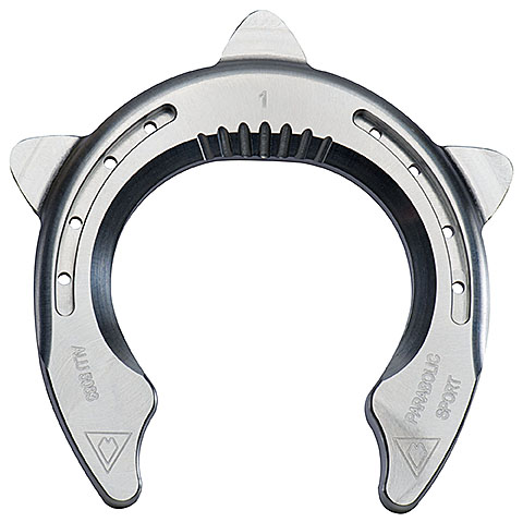 Bred yta i tån för att skydda främre delen av hoven och balansera penetrationen mellan tå och trakt i kompakta och genomträngliga underlag. Smala traktarmar för att främja hovens laterala eller mediala penetration i böjt spår i kompakta och genomträngliga underlag. Stor yta i trakten för att begränsa penetrationen av hovens bakre del i kompakta och genomträngliga underlag. Avfasad ytterkant i tå, tåvägg och sidoväggar för ökad överrullning på rakt och böjt spår.