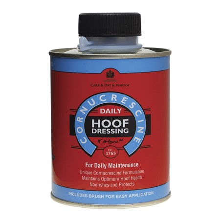 En närande dressing baserad på den ursprungliga Cornucrescine-formeln. Lämplig för alla hovtyper och perfekt för dagligt bruk. Innehåller en integrerad kvalitetsborste för enkel applicering.