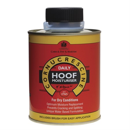 Cornucrescine Hovmjukgörare är en utmärkt lösning för att reparera skadade och torra hovar för att förhindra ytterligare sprickor och sprickbildning. Används tillsammans med Original Hovsalva för att påskynda hovtillväxten och underlätta återuppbyggnad av hoven.