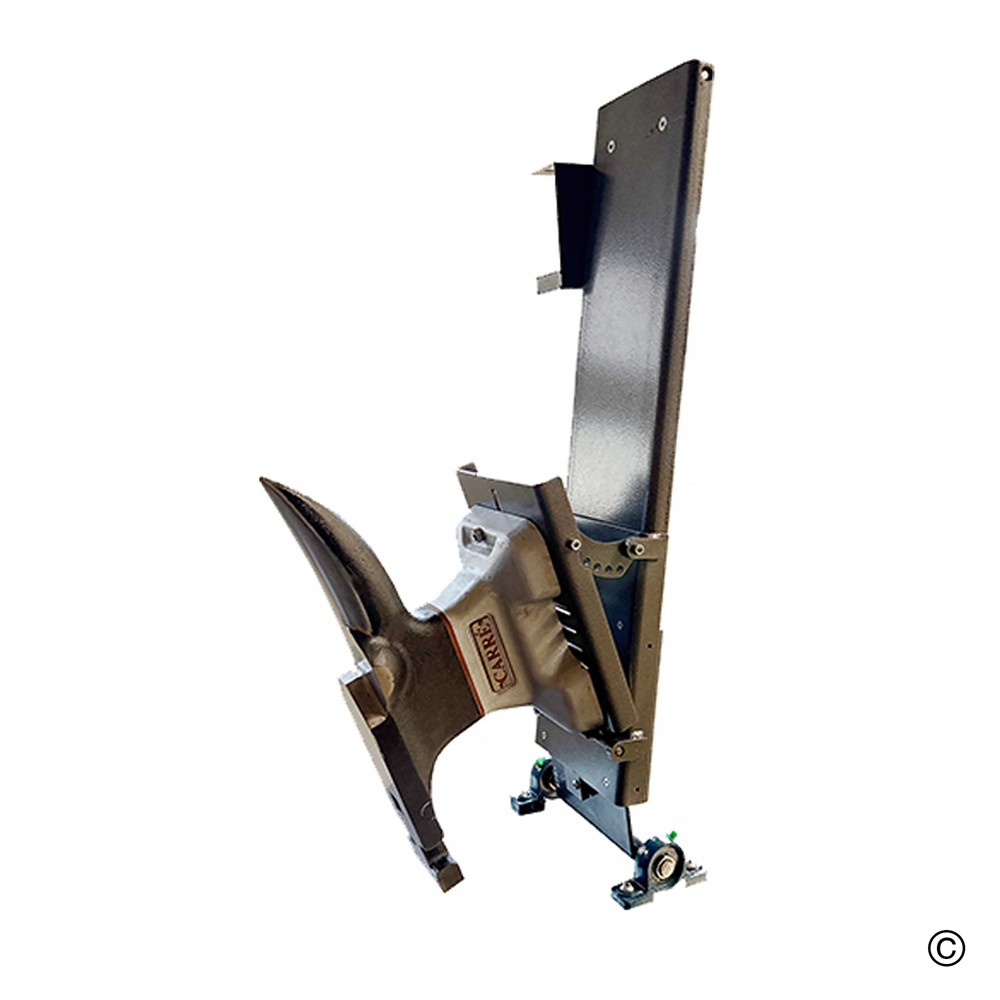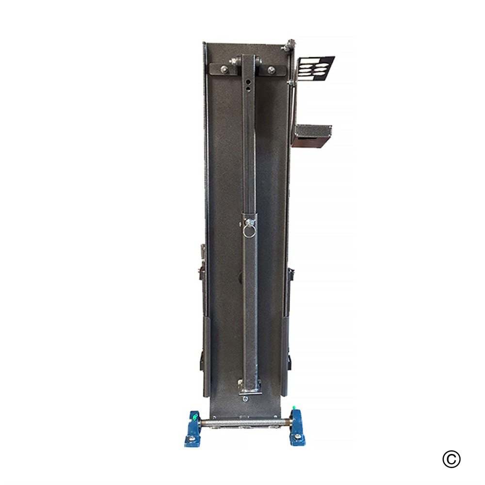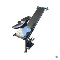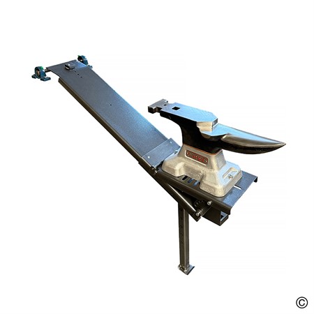 - För att arbeta fälls bara rälsen ner, med hjälp av den inbyggda gasfjädern dras städet framåt på vagnen, pressas ner till individuellt önskad arbetshöjd, låses på plats och stativet fixeras och sätts i position.
