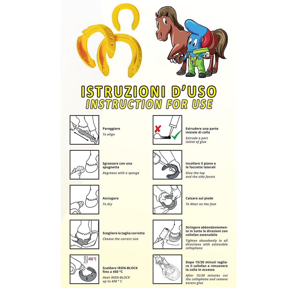 Limsko i polyeretan. Tillåter uppvärmning upp till 450 grader och sätts fast på hästens hov med hjälp av lim, t ex Vettec Adhere.