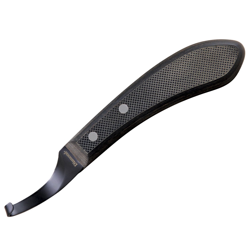 Toppmodern hovkniv med design som följer konturen på hästens sula och därigenom förenklar trimningen. Skarpt rostfritt stålblad belagd med en rostskyddande yta för längre livslängd. Lyxigt greppvänligt trähandtag, bekvämt året runt.
